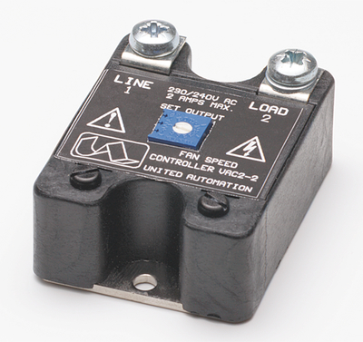 A power regulator designed primarily for speed regulation of fans, but can also be used for power regulation of other inductive loads of up to 2 A. The regulator has an integral RFI filter and the speed is adjusted by a trimmer potentiometer on the outside.
