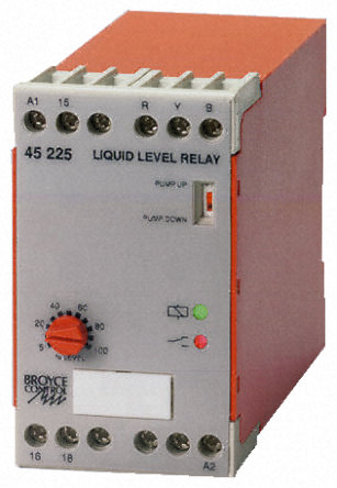 2. If supply is interrupted for ≤0.5s in “pump-up” mode, the relay will energise immediately. In “pump-down” mode relay remains de-energised