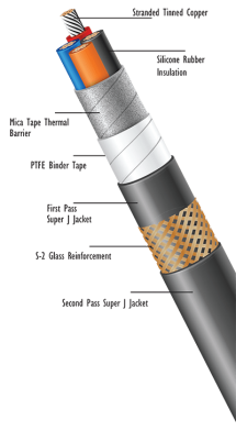 PTFE Fluoropolymer Tape with flame and heat-resistant reinforced Mica Tape overall.