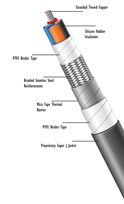 Titan S is constructed for use in high temperature applications as a multiple conductor control/power cable where resistance to abrasion, moisture, hot material spills, and mechanical abuse are desired. This cable is typically used in steel plants for teeming ladle transfer car applications. Flame and heat-resistant reinforced Mica Tape and Super J jacketing extends cable life over other products.