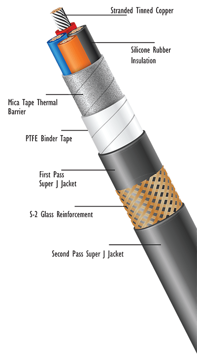 PTFE Fluoropolymer Tape with flame and heat-resistant reinforced Mica Tape overall.