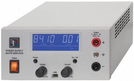 EA-PS 2000B series μ-processor controlled and USB-programmable low-cost power supplies provide for a fully flexible 'auto-ranging' output, enabling them to work with either a higher voltage or a higher current within the stipulated U/I/P rating. They are equipped with digital encoders for U and I setting, a full 4-digit LCD segment display with various function status (output pre-set, -lock and standby) and a mini USB port for computer control. The units have high stability and low ripple and are protected against over-current (OCP), DC over-voltage (OVP) and over-temperature (OTP). Applications include R&D, repair, test, maintenance and vocational training in small laboratories, workshops, technical schools and universities.