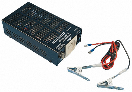 Преобразователь постоянного напряжения 12 или 24 В в переменное напряжение 230 В. Обеспечивает работу оборудования, которое обычно питается от электросети, от батареи, телевизоров, видеомагнитофонов и т.д. Может также использоваться для зарядки батарей в переносных компьютерах, телефонах или видео и фото камерах или как вспомогательный источник питания в случае перебоя в сети. Может использоваться вместе с солнечными электрическими системами. Вход оснащен выводами батареи, выход со стандартной электросетевой розеткой (IEC 83). Преобразователь имеет защиту от бросков напряжения и короткого замыкания.