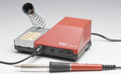 WHS40 is an electronically controlled 40 W soldering station with continuously variable analogue temperature control. The desired temperature is set using a variable potentiometer. A green LED functions as optical regulation control.